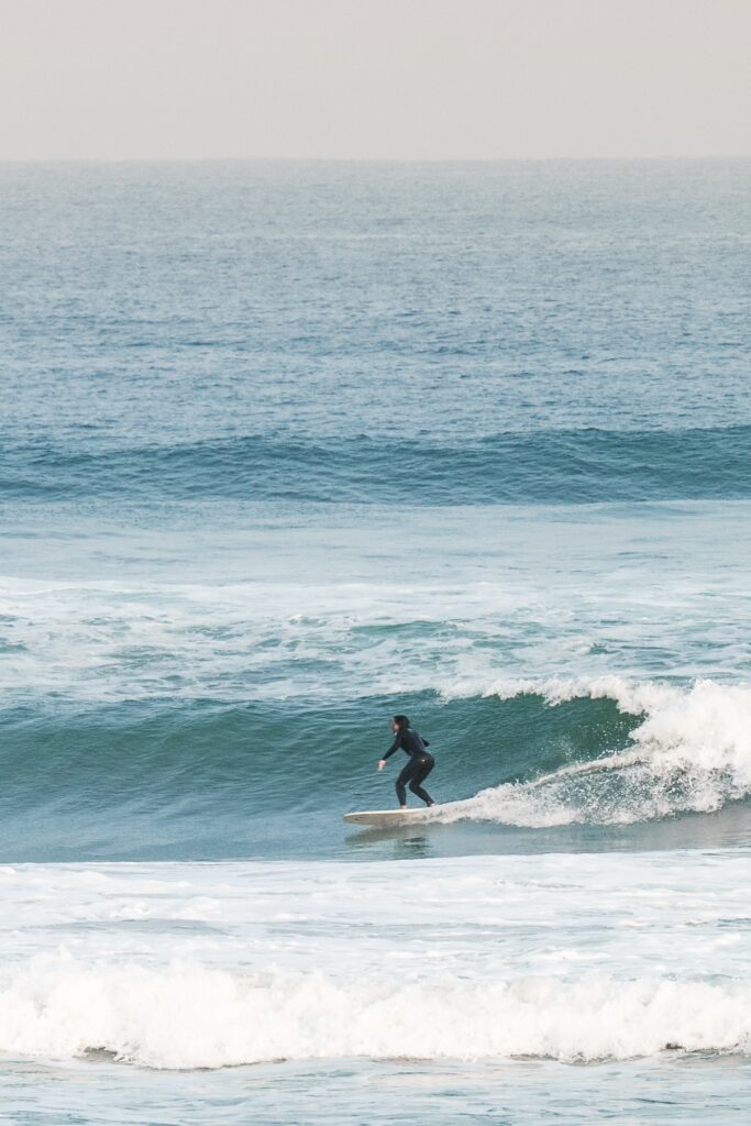 Depuis septembre, je suis installée dans les Landes et vais à l’eau plusieurs fois par semaine. Il n’y a pas de secret : pour s’améliorer en surf, il faut pratiquer, quelles que soient les conditions. Cela demande du temps, de la patience, et surtout une bonne dose de persévérance. Pour m’aider dans cette progression, je prends des cours toute l’année avec Surfguides, ce qui m’apporte un encadrement professionnel et adapté à mon niveau.